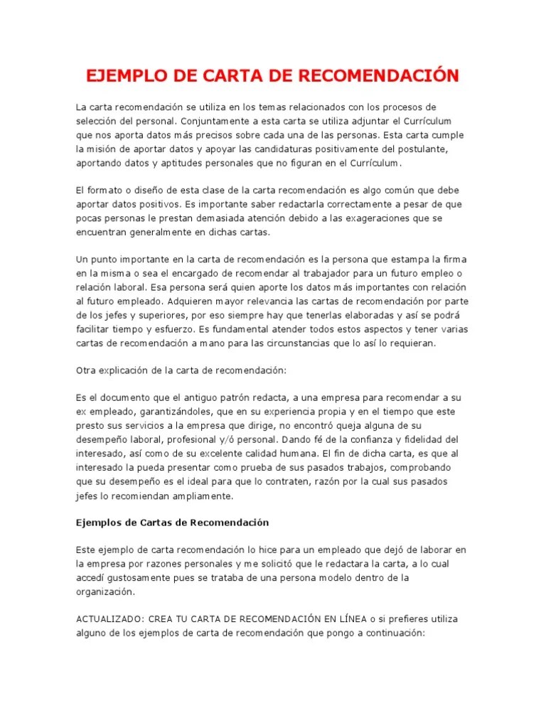 Cuando busques un trabajo u otra actividad. Ejemplo de carta de recomendación personal: Descubra este formato de carta de recomendación personal para descargar en word. Ejemplo de carta de recomendación laboral (versión texto) para oxxo, coppel, odontólogo, oficios varios. Ejemplos de carta de recomendacion.com s.a.